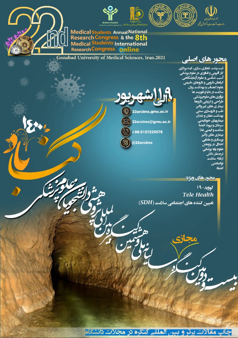 بیست و دومین کنگره سالیانه ملی و هشتمین کنگره بینالمللی پژوهشی دانشجویان علوم پزشکی بهصورت مجازی در تاریخ نهم الی یازدهم شهریورماه سال جاری به میزبانی دانشگاه علوم پزشکی گناباد برگزار میشود.