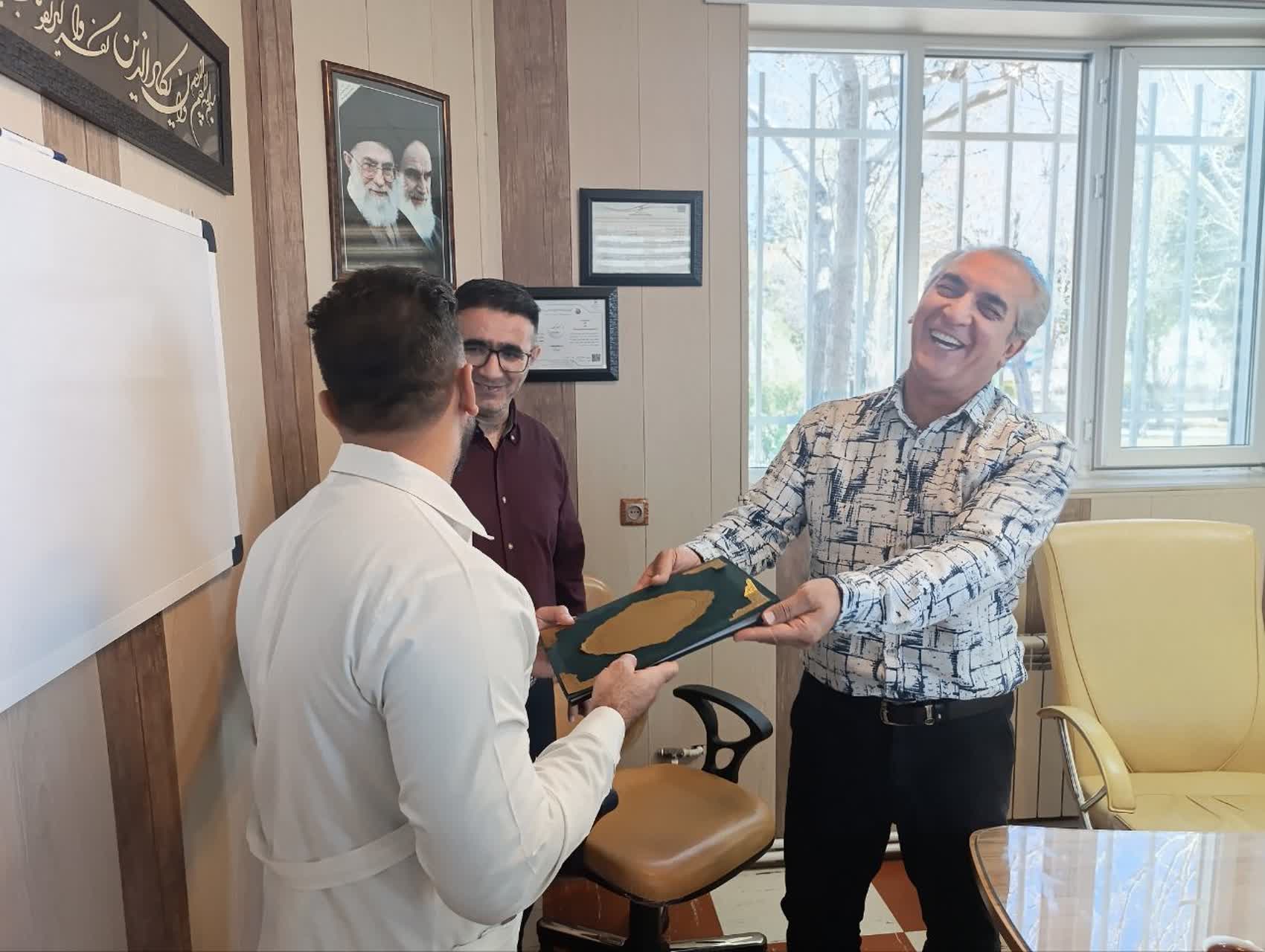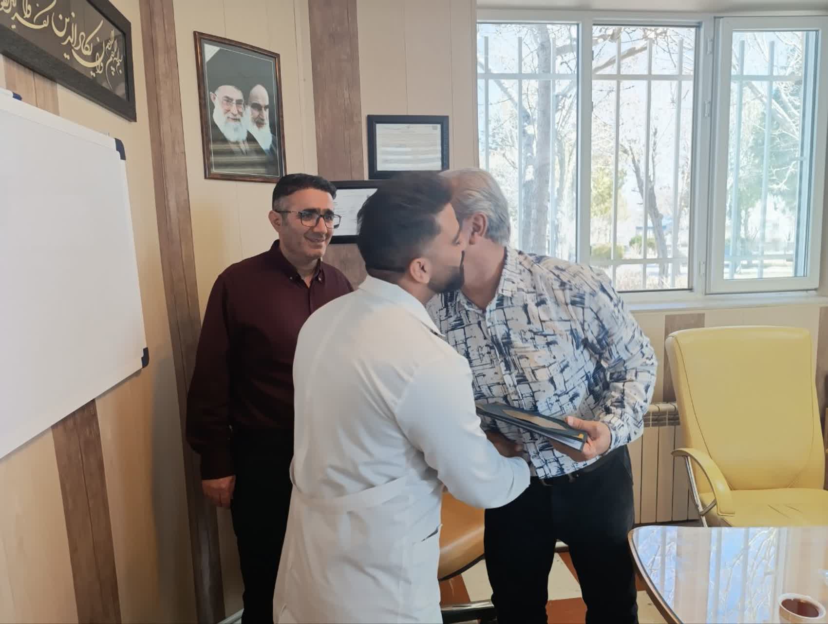 به گزارش روابط عمومی بیمارستان در مورخه بیست و هفتم بهمن ماه چهار صد وچهار در ساختمان ریاست با حضور ریاست محترم بیمارستان آقای دکتر پیر فلاح ومدیر داخلی بیمارستان آقای مهندس زند سلیمی ومترون بیمارستان آقای ناصری و گروه روانشناسان بیمارستان بر گزار شد. در این جلسه آقای دکتر پیر فلاح از زحمات بی دریغ آقای شریعتی در طی این مدت کمال تشکر وقدردانی نمودن وطی حکمی سر کار خانم حمیری رضائی را به عنوان مسئول گروه روانشناسان معرفی نمودن ودر اخر جلسه با اهدای لوح از هر دو عزیزان قدر دانی نمودن.