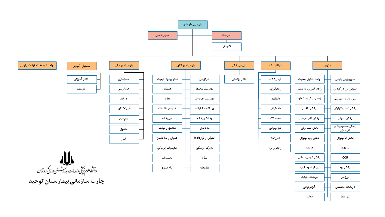 دورنما و رسالت ما»» خانواده بزرگ با استعانت از خداوند متعال و با تکیه بر دانش و فنآوری روز، و به مدد ایمان، وجدان کاری و تلاش گروهی کارآمد خویش میکوشد تا به عنوان یکی از برترین و پیشروترین مراکز در ارائه خدمات درمانی،آموزشی و پژوهشی در سطح کشور باشد.»» بیمارستان توحید به عنوان قدیمیترین بیمارستان دولتی استان با هدف تامین انتظارات بیماران، کارکنان و سایر ذینفعان به: 1. ارائه خدمات درمانی موثر 2. بهبود مستمر کیفیت خدمات درمانی 3. آموزش دانشجویان پزشکی و پیراپزشکی 4. انجام و به کارگیری پژوهش های کاربردی پرداخته و این ارزشهای متعالی را درنظر دارد: 1. رعایت اصول دینی و اخلاقی 2. مشتری مداری 3. مسوولیت پذیری و شایسته سالاری 4. کارتیمی 5. حفظ و ارتقاء ایمنی 6. ارج نهادن به خلاقیت و نوآوری 7. بهبود مستمر کیفیت 8. پزشکی مبتنی بر شواهد |