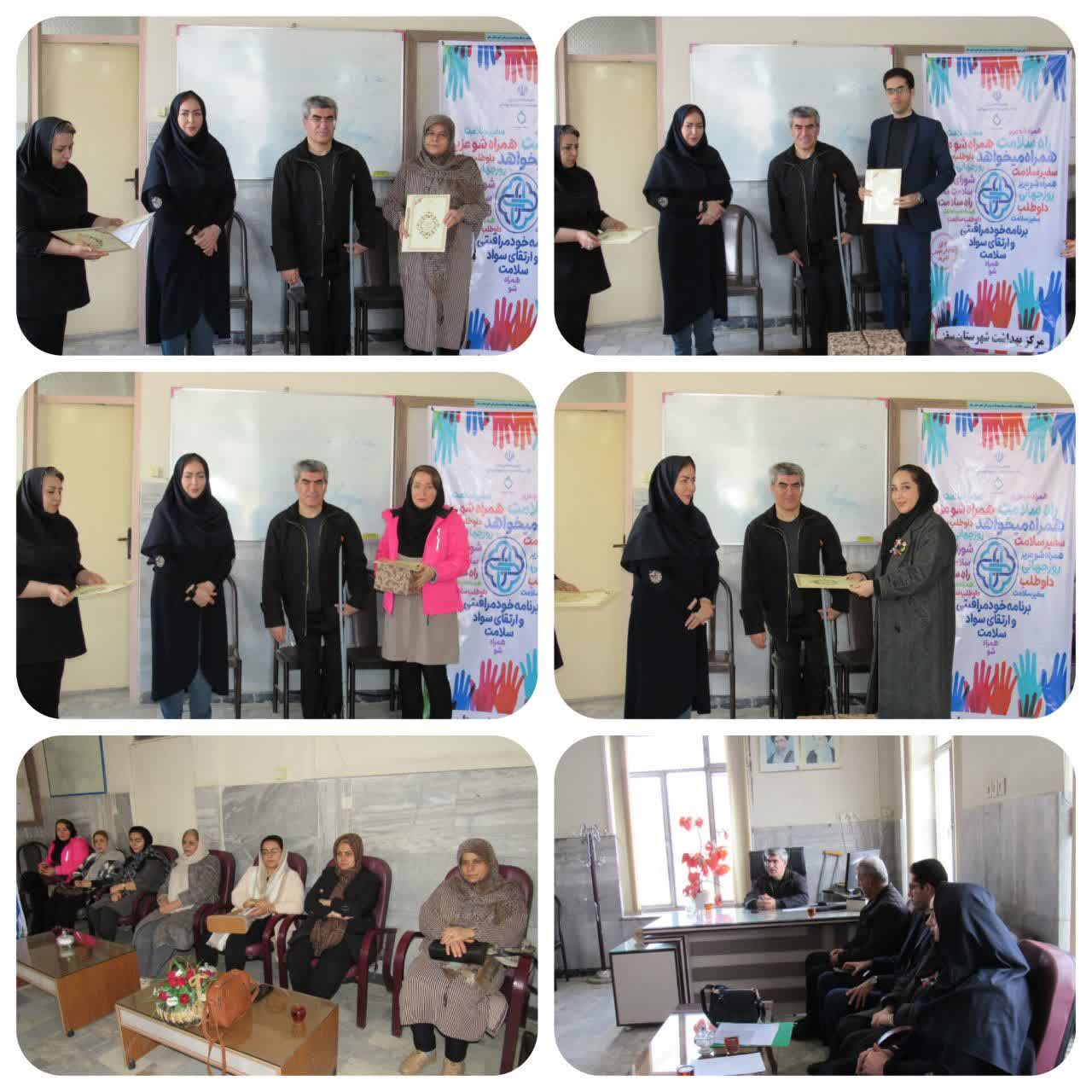 مراسم تقدیر از رابطان سازمانی ،داوطلبان وسفیران سلامت ،اعضای خانه مشارکت وهمکاران مراکز شهری و روستایی در تاریخ ۱۴۰۴۰۱۱.۱۴ در دفتر ریاست محترم مرکز بهداشت برگزار گردید