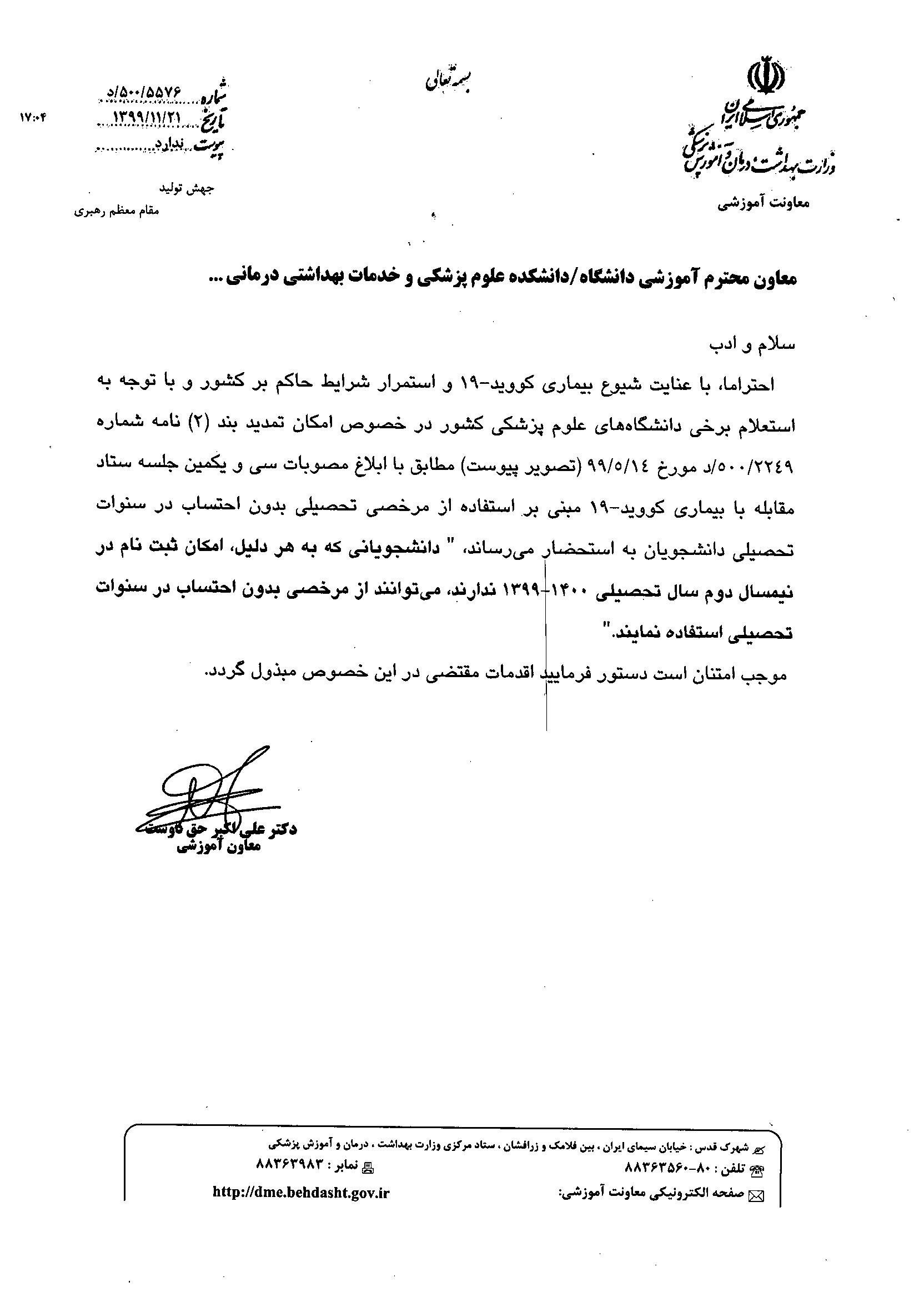 - مرخصی بدون احتساب در زمان شیوع بیماری کووید-19